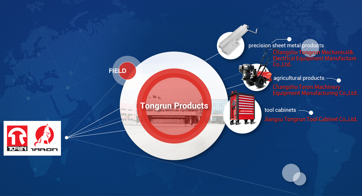 The company owns 2 manufacturing plants, Xin Longteng manufacture base and Haiyu manufacture base, covers 258,000m3, a floor space of 214,000 m3. The company is a foreign-invested joint stock company, owns seven subsidiaries: Jiangsu Tongrun Tool Cabinet Co., Ltd/ Changshu General Electric Factory Co., Ltd/ Changshu Tongrun Switch Factory Co., Ltd/ Changshu Tongrun Equipment Development Co., Ltd/ Changshu Tongrun Machinery and Electrical Equipment Manufacture Co., Ltd/ Changshu Taron Machinery Equipment Manufacturing Co., Ltd/ Changshu Tongtai Enterprise Management Co., Ltd. The company is mainly engaged in the two main fields of sheet metal products and electrical products. The main products are metal tool cabinets, precision sheet metal parts, photo-voltaic inverters, electrical control cabinets, high and low voltage circuit breakers, agricultural products etc. Metal tool cabinets, as the pillar industry of the company, are exporting products to over 140 countries.